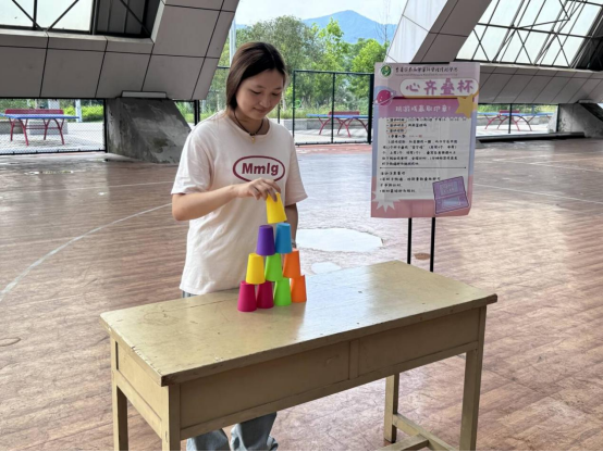 活动现场气氛热烈,参与人员众多,现场组织了一系列与精神健康相关的小游戏,如“心齐拍手”“心灵步伐”“心齐叠杯”“心随令动”等。学生们呼朋引伴赶来,把场地挤得满满当当。“心齐拍手”游戏里,五六个人围成圈圈依次拍手,大家有着节奏的接力,拍手声混杂着欢声笑语现场超热闹;“心齐叠杯”区,大家把杯子叠成“金字塔”。所有人都暂时抛开学业压力,在玩闹中收获满满快乐,把世界精神卫生日过成了一场专属学生的“情绪派对”。各种压力与烦恼在一片欢声笑语中烟消云散。这次精神卫生日开展的活动多姿多彩,参与者们在游戏中不仅收获了快乐,还学到了如何通过积极的方式缓解压力、保持良好的心态。